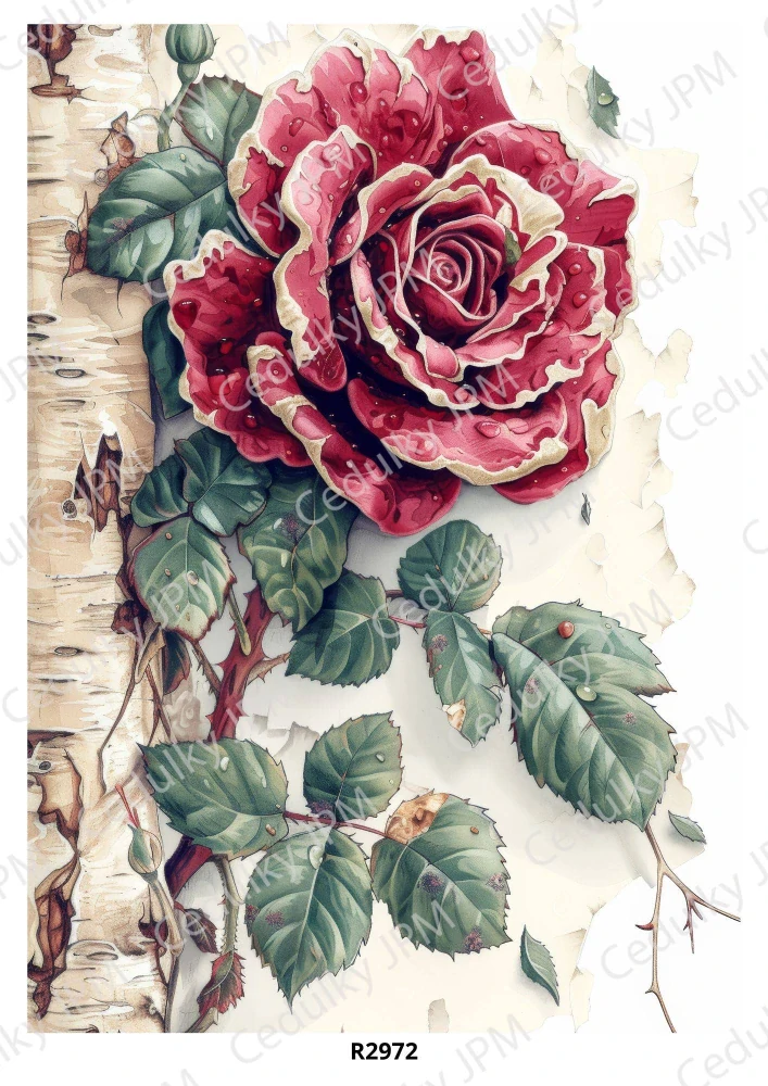 Nejlepší papír na decoupage, běžně označovaný jako „rýžový papír“. Rýžový decoupage papír je ideální pro amatéry i profesionály. Jeho nejdůležitějšími vlastnostmi jsou mimořádná odolnost, snadné "pokládání" na kulaté předměty a především dobře viditelná, velká charakteristická vlákna.