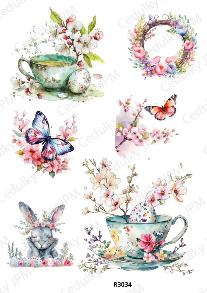 Gramáž papíru je 40g/m2. Velmi tenký a pevný bílý papír, snadno absorbuje vodu, je pružný a netrhá se. Skvělý pro dekorování dřeva, ale také dalších povrchů jako jesklo, mdf nebo polystyren. Papír můžete potom lakovat, zvýšíte tak kontrast a jas barev, stejně jako jeho ochranu před odřením.