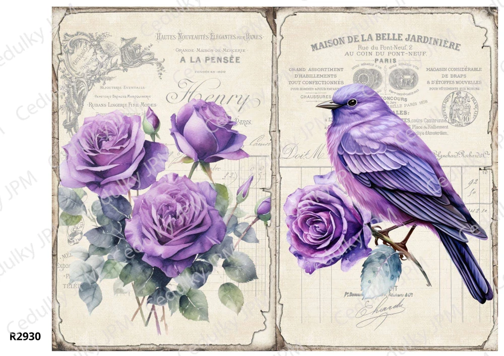 Nejlepší papír na decoupage, běžně označovaný jako „rýžový papír“. Rýžový decoupage papír je ideální pro amatéry i profesionály. Jeho nejdůležitějšími vlastnostmi jsou mimořádná odolnost, snadné "pokládání" na kulaté předměty a především dobře viditelná, velká charakteristická vlákna.