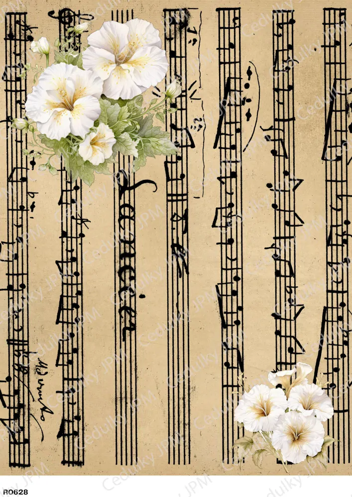 Gramáž papíru je 40g/m2. Velmi tenký a pevný bílý papír, snadno absorbuje vodu, je pružný a netrhá se. Skvělý pro dekorování dřeva, ale také dalších povrchů jako jesklo, mdf nebo polystyren. Papír můžete potom lakovat, zvýšíte tak kontrast a jas barev, stejně jako jeho ochranu před odřením.