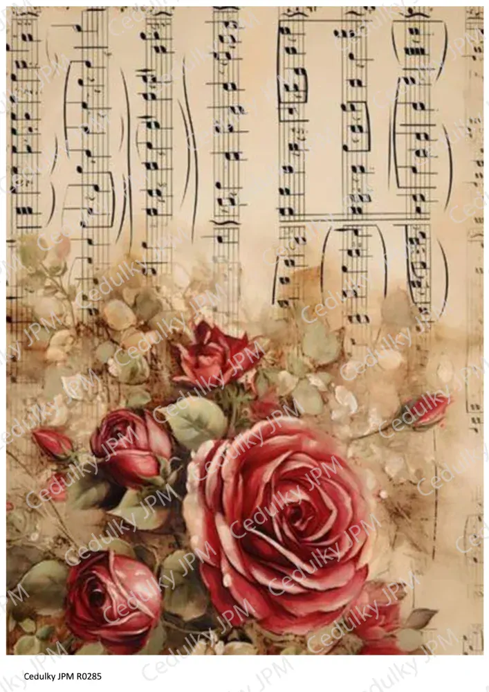 Gramáž papíru je 40g/m2. Velmi tenký a pevný bílý papír, snadno absorbuje vodu, je pružný a netrhá se. Skvělý pro dekorování dřeva, ale také dalších povrchů jako jesklo, mdf nebo polystyren. Papír můžete potom lakovat, zvýšíte tak kontrast a jas barev, stejně jako jeho ochranu před odřením.