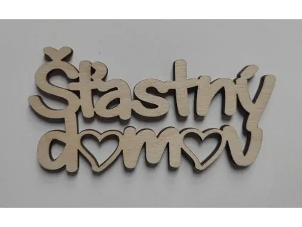 Nápis - Šťastný  domovVelikost : 12x6 cm materiál: překližka 3-4 mm  celý popis